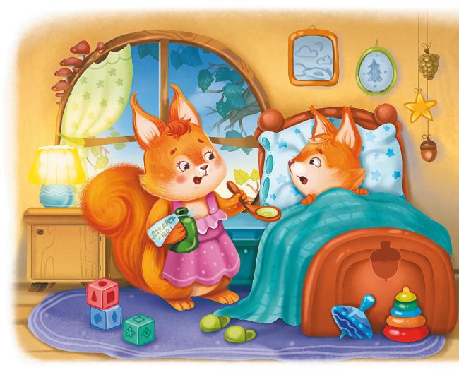 – Разве ты забыл, что даже от кусочка у тебя опухает шея и затрудняется дыхание? – причитала мама-белка, давая Рыжику лекарство от аллергии.