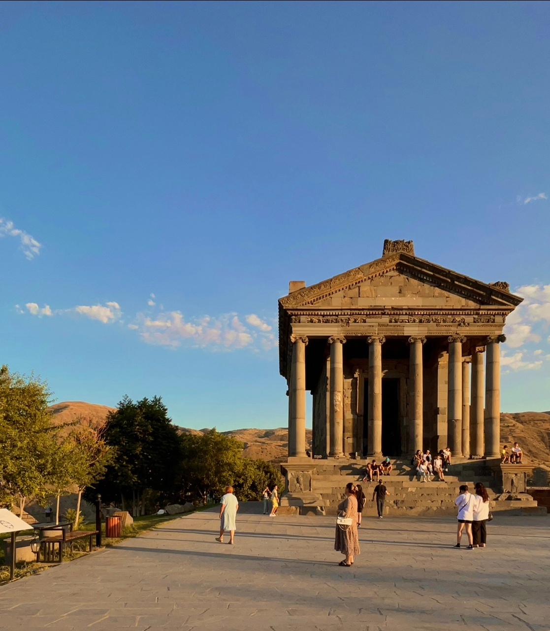 Точные пропорции, симметричность, ионические колонны здания, изящная резьба – всё это поражает воображение и не может оставить равнодушным ни одного туриста. Этот необыкновенный памятник армянской истории впервые упоминается в первой половине I века н. э. Историки считают, что возведение храма началось по приказу тогдашнего царя Трдата I. Здание было построено в честь бога солнца
