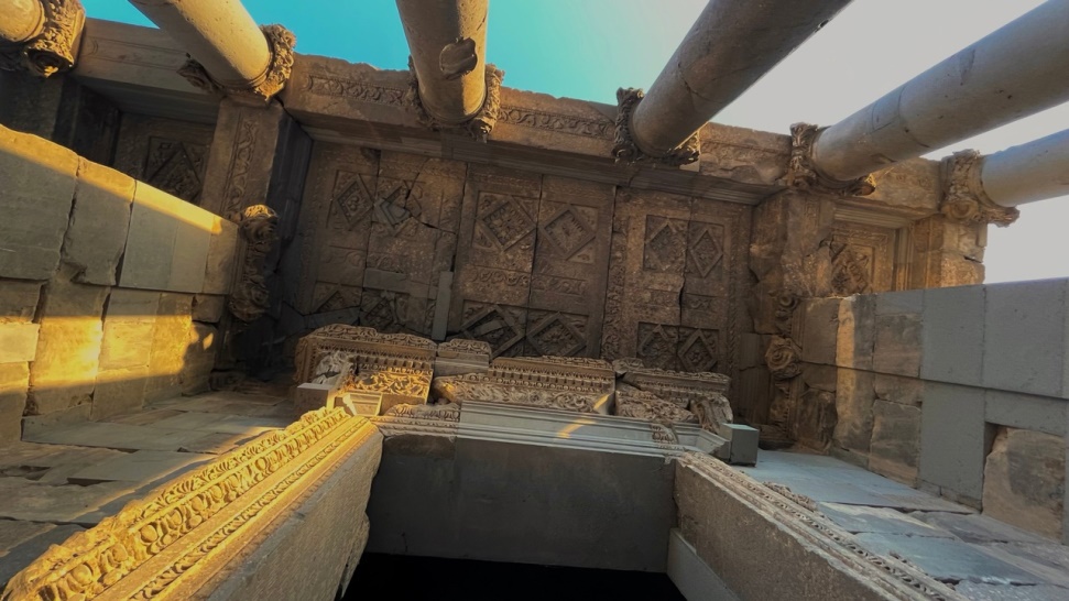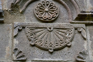 Много изящной резьбы можно увидеть при входе в здание. Если идти дальше через сени, можно оказаться в небольшом святилище. Когда-то здесь находилась статуя бога Митры.