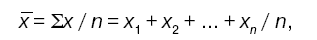 Базой для расчета простой средней арифметической являются первичные записи результатов наблюдения. Предположим, что известны значения признака x1x2, …, хп. Каждое из этих значений повторяется один раз (или теоретически одинаковое количество раз), т. е. данные не сгруппированы. Тогда для такого ряда следует использовать формулу средней арифметической простого ряда или простую среднюю арифметическую: