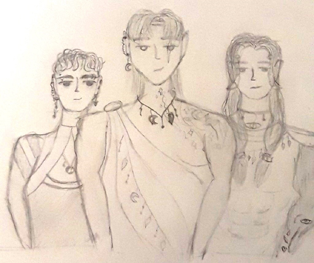 Глаза девушки поднялись теперь уже и на самих мужчин. Тот, что стоял в центре, был самым высоким и широким. Его ширину плеч можно было сравнить с бесконечным ручьём. Второй силуэт был немного ниже старшего и менее широкоплечим, сквозь накидку виднелась смуглая кожа. И самый дальний силуэт был меньше обоих и явно младше. Телосложение было слишком худым для их компании.