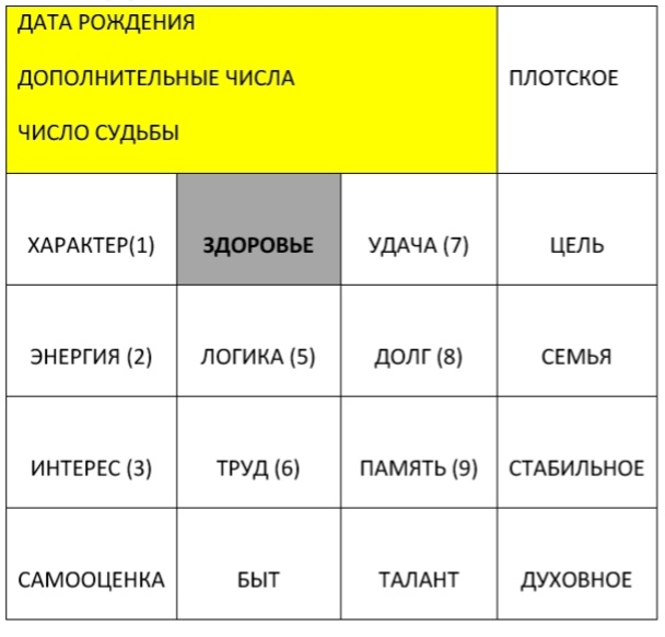 Сектор ЗДОРОВЬЕ обозначается ЧЕТВЕРКАМИ (4) – это физическая сила, выносливость, внешняя привлекательность, особенности строения тела (высокий рост, длинные ноги, хорошая кожа, зубы и тд.) сила голоса и агрессия.