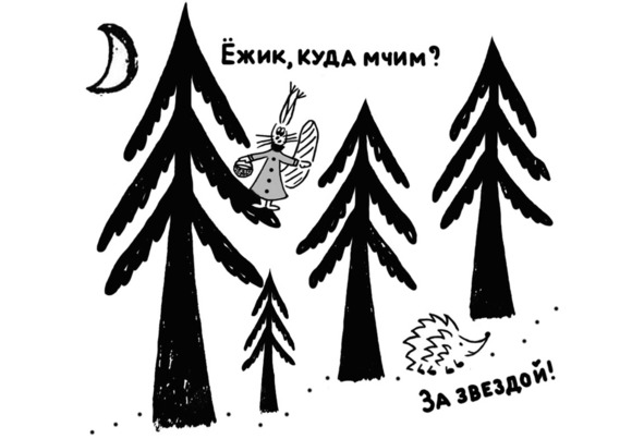 – Привет, Лисичка! – пропыхтел Ёжик. – Куда там спать, когда в лесу звезда упала. Я её найду и подарю маме.