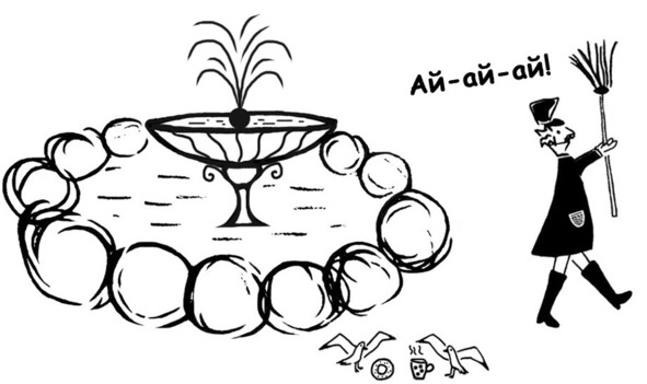 Как сказано, так и сделано. С довольным видом дворник уселся на каменную ограду городского фонтана. Это было его любимое место отдыха. Затем он огляделся по сторонам, погрозил чайкам в небесах и вытащил из-за пазухи баранку с маком. Что ж, настало время для лёгкого перекуса. Но только дворник разинул рот, как ему пришлось с криком подскочить с тёплого насиженного местечка.