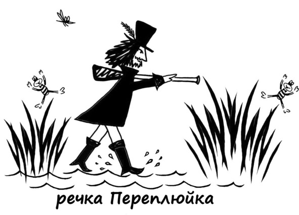 Охотничьи сапоги упустили добычу и от злости застучали на месте. Точнее, они захлюпали, так много в них набралось воды. Хлюп-хлюп! Хлюп-похлюп! На том пришла пора сапогам держать путь восвояси. И они захлюпали в сторону чёрного-чёрного дома, окружённого чёрным-чёрным забором.