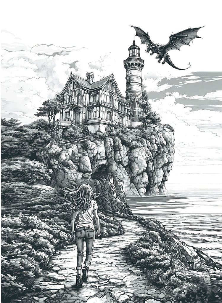 …На море разразился шторм. Искусственный интеллект на большой земле включил все маяки в радиусе 1500 километров, лампы которых синхронно вспыхнули одинаково, жёлтым, и только на одном, тринадцатом, свет отличался. Он горел ярче в два раза, ярко-фиолетовым пламенем, потому что зажжён был не какой-то бездушной машиной, а добрым и справедливым драконом.