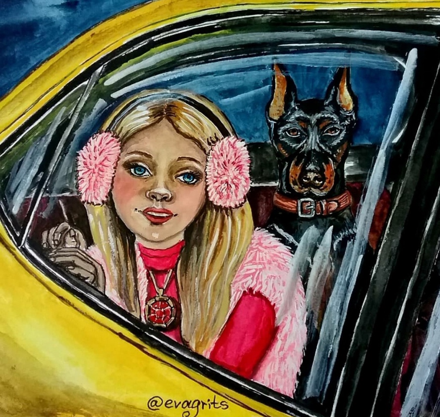 Шофер увидел, что Светлана, Вика и огромный дог Сириус направляются к его такси. Он быстро проглотил кусок пончика, сделал глоток горячего кофе, поставил картонный стаканчик на капот и, обращаясь к Светлане, строго сказал: