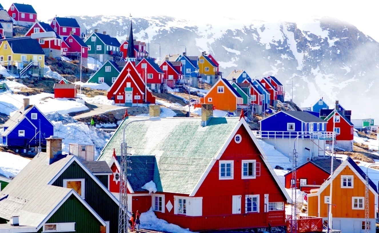 Но это не отдельное государство. Остров является автономией в составе Дании, поэтому местная валюта – датская крона. Столица острова – город Нуук. Это одна из самых маленьких столиц в мире. Население города всего 15000 человек. Обычные рейсовые автобусы ходят очень редко – 1 раз в час. В Нууке очень красивые домики: разноцветные, сочные, как конфетные. И ярким цветам есть объяснение. Бо́льшую часть года в Нууке зима. Всё вокруг покрыто снегом, растительности нет. А яркие домики создают невероятную картину. Все дома обязательно деревянные, потому что дерево лучше всего сохраняет тепло. Многие стоят на сваях, специально повыше, чтобы зимой не замело снегом.
