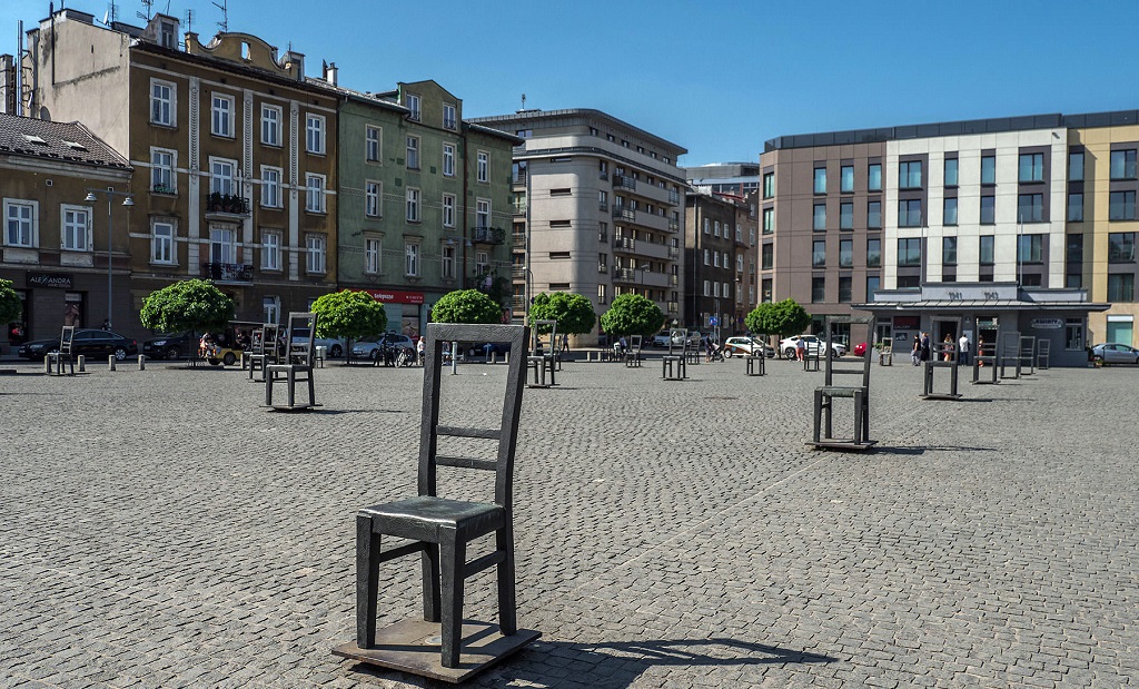 Площадь Героев гетто всегда тихая. Гетто – это район Кракова, в который фашисты сгоняли евреев. Гетто было обнесено стеной, и люди здесь жили в нечеловеческих условиях.