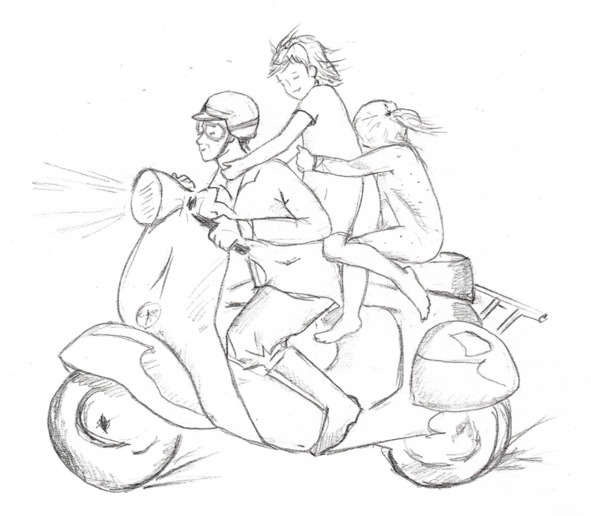 Приезжали мы из города на мотороллере Вятка. Сначала отец отвозил Лидяню. Потом наступала наша с Олюнчиком очередь.
