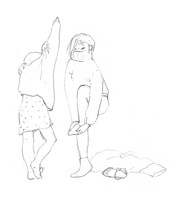 Мы выбираемся из кроватей, бежим на реку умываться.