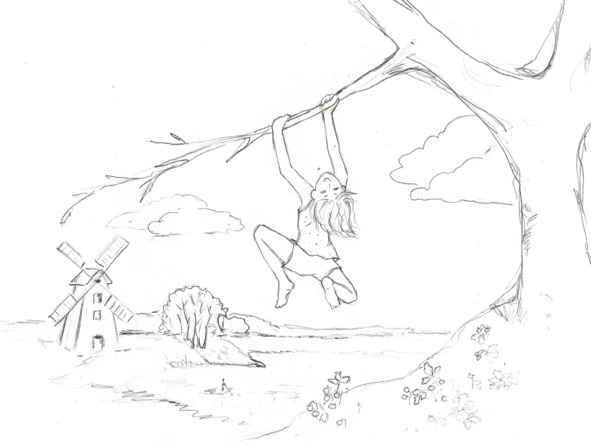 По всему оврагу, склонив над ним свои ветки, росли плакучие берёзы. Каждая из нас выбирала ветку подлиннее, оттягивала её на себя, пятилась назад, а потом с разбегу с воплем прыгала через овраг. В самой дальней точке полёта мы разжимали руки, ветка возвращалась на своё место, а мы падали вниз.