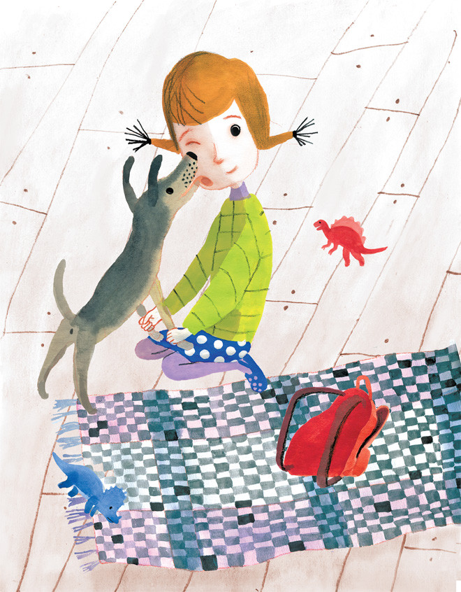 Мы собираем в рюкзаки вещи и самое ценное. У меня много ценного! Динозавры, бинокль и цветочек из бисера. Живчик приносит мячик. А вкусные косточки я сама достаю из шкафа и кладу в пакет. В благодарность Живчик лижет меня в нос. Язык у него парной, как воздух в теплице.