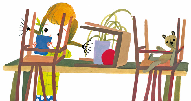 Лена редко заходит в наш дом. Но мы всё равно. Ставим на столы стулья. Поднимаем с пола переноски с розетками. Все игрушки. И все горшки с цветами. Дорожки мы сворачиваем. Как вафельные трубочки! И кладём горкой прямо на диван. Теперь пол раздетый. Как будто настало лето и он приготовился загорать. А вообще-то на улице ещё май. Поэтому пол лежит и зябнет, бедняга. И я вдобавок беру и складываю на него продукты из холодильника! Потом крупу из шкафов, муку и сахар. Мама поднимает еду на чердак и прячет в бочку. Бочка там нарочно стоит. Железная такая, тоже холодная. Она от Лены защищает наши припасы. А ещё от мышей.