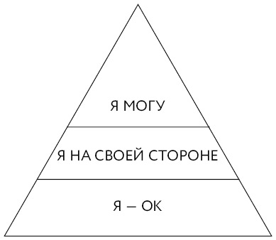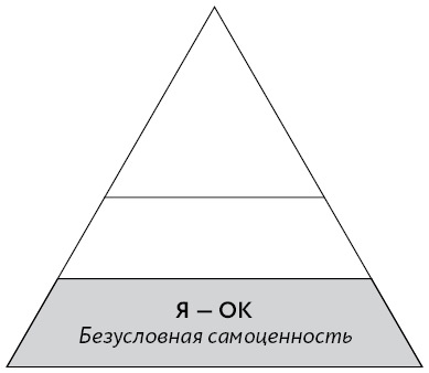 В широком основании этого треугольника – глубинное ощущение своей ценности, которое не связано ни с достижениями, ни с отношением окружающих. Оно просто есть. Это способность любить и уважать себя просто так. В психологии базовая любовь к себе называется безусловной самоценностью. Это фундамент здоровой самооценки. В этой книге мы будем называть это «Я – ОК».