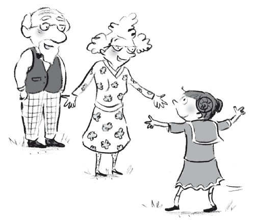 Эмми взобралась на дедушкину спину, и он вместе с ней побежал к лесной поляне. Эмми визжала, дедушка смеялся. Эверта на голове у дедушки болтало из стороны в сторону.