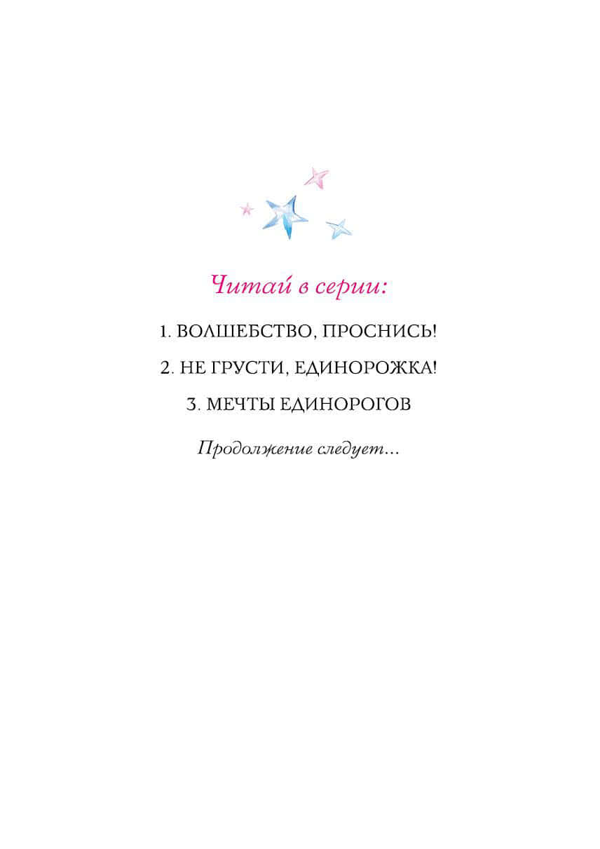 Не улыбалась только Ванилька. Она стояла поодаль, устремив отсутствующий взгляд в небо. В это мгновение к ней подскочила особенно милая попрыгунья, усыпанная смешными крапинками. Она подпрыгнула и пощекотала единорожке ухо.