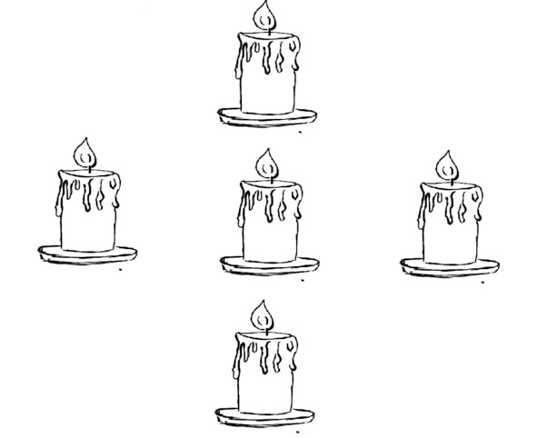 Количество свеч для ритуала – 5. Расположены они могут быть в виде классической Пентаграммы