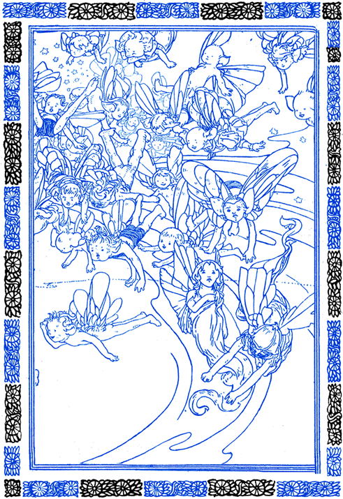 За те сорок минут, пока Пак облетал землю, все собрались. Роскошь и великолепие ослепили бы глаза любого смертного. Здесь были в ярких нарядах феи цветов и радуг, ручьёв и лесов. Эльфы, гномы и горные карлы из подземных пещер, где добывают золото и гранят драгоценные камни. Бесчисленные пикси, брауни и малые духи. Прибыла крёстная фея Золушки и гном Всемудрый, который просил руки дочери Тора. Были Добрый Робин и Ариель; фрейлины Титании Цветной Горошек и Паутинка, Мотылёк и Горчичное Зёрнышко; Дюймовочка с мужем, принцем эльфов, и Крошка-с-ноготок, и Через-напёрсток. Свита короля – Пигвиггинс, Барвинок, Пак, Хобгоблин, Томалин и Мальчик-с-пальчик. Придворные дамы королевы – Хоп, Мох, Кап, Пип, Плюх, Прыг, Бух, Бип, Клоп, Роз, Шпиль, Скип, Жабр, Ах, Цып, Эй, Зай, Знай с Нимфидией, главой фрейлин. И… Но я не буду перечислять всех собравшихся при дворе Оберона, иначе не останется места ни для сказок, ни для прекрасных картинок к ним.