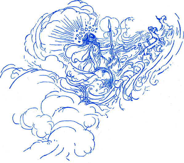 Как вы, конечно, знаете, Тор был самым сильным и храбрым из великанов севера. Высокий, с горящими карими глазами, мечущими молнии, с развевающейся по небу длинной рыжей бородой, он разъезжал в повозке, запряжённой горными козлами. Яркие искры вылетали из-под копыт, а на голове Тора сияла корона из ярких звёзд. Когда великан сердился, его повозка с грохотом и громом пролетала по небу, а люди прятались и говорили друг другу, что Тор поскакал на битву с гигантами Края Мира или какими-нибудь другими своими врагами.