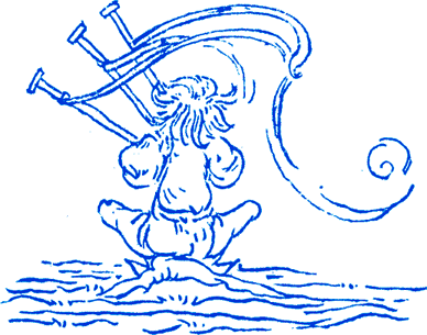 Через неделю волынка была готова, и как только заморыш её увидел, то завизжал от восторга и пошёл подкидывать ноги, скакать и гримасничать в своей кровати. Чтобы успокоить его, родители дали ему волынку, и тут же он выдал такую скользящую джигу, что все слышавшие её замерли от восхищения.