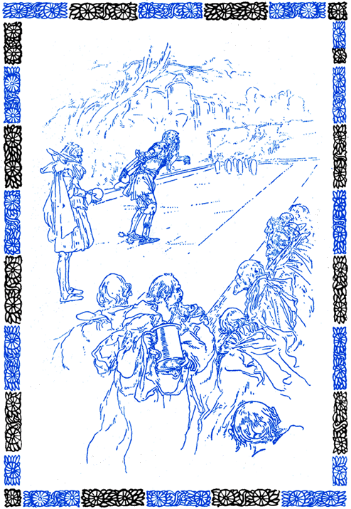Карл поспешил следом и, петляя среди руин, скоро услышал приближающийся шум, похожий на раскаты грома. Шум становился всё громче, пока, наконец, они не вышли во внутренний двор, окружённый заросшими плющом стенами. Похоже, это было сердце долины, потому что вокруг вздымались отвесные скалы. Тенистые деревья раскинули ветви над головой, так что только сумеречный свет проникал сквозь листья. А под деревьями на траве Карл увидел дюжину странных фигур в старинных одеждах, степенно развлекавшихся игрой в кегли.