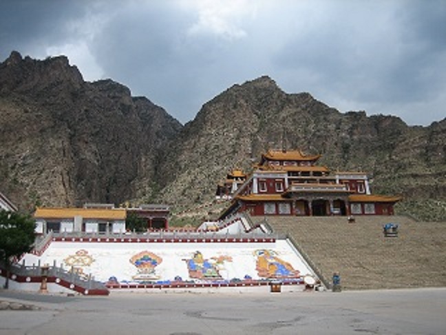 Монастырь располагается в красивой пади. Алашань ― это почти пустыня, скудная растительность, много песка. Падь же была закрыта от ветров высокими грядами холмов, поросшими зелененькой травой и кустами. Отдохновение души и тела! Но меня постигло жестокое разочарование ― монастырь оказался абсолютным новоделом. Недавно построенные храмы, аккуратно разрисованные танки4 божеств, свежеокрашенные заборчики и бордюрчики… Ни одной вещицы, которой пользовался или хотя бы держал в руках сам Владыка. Ни-че-го!