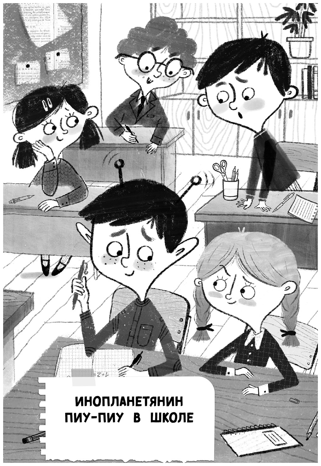 Пиу-Пиу почесал живот. На его планете все так делают, когда что-то непонятное происходит. Но его выручил мальчик по имени Миша, он как раз сидел за первой партой.