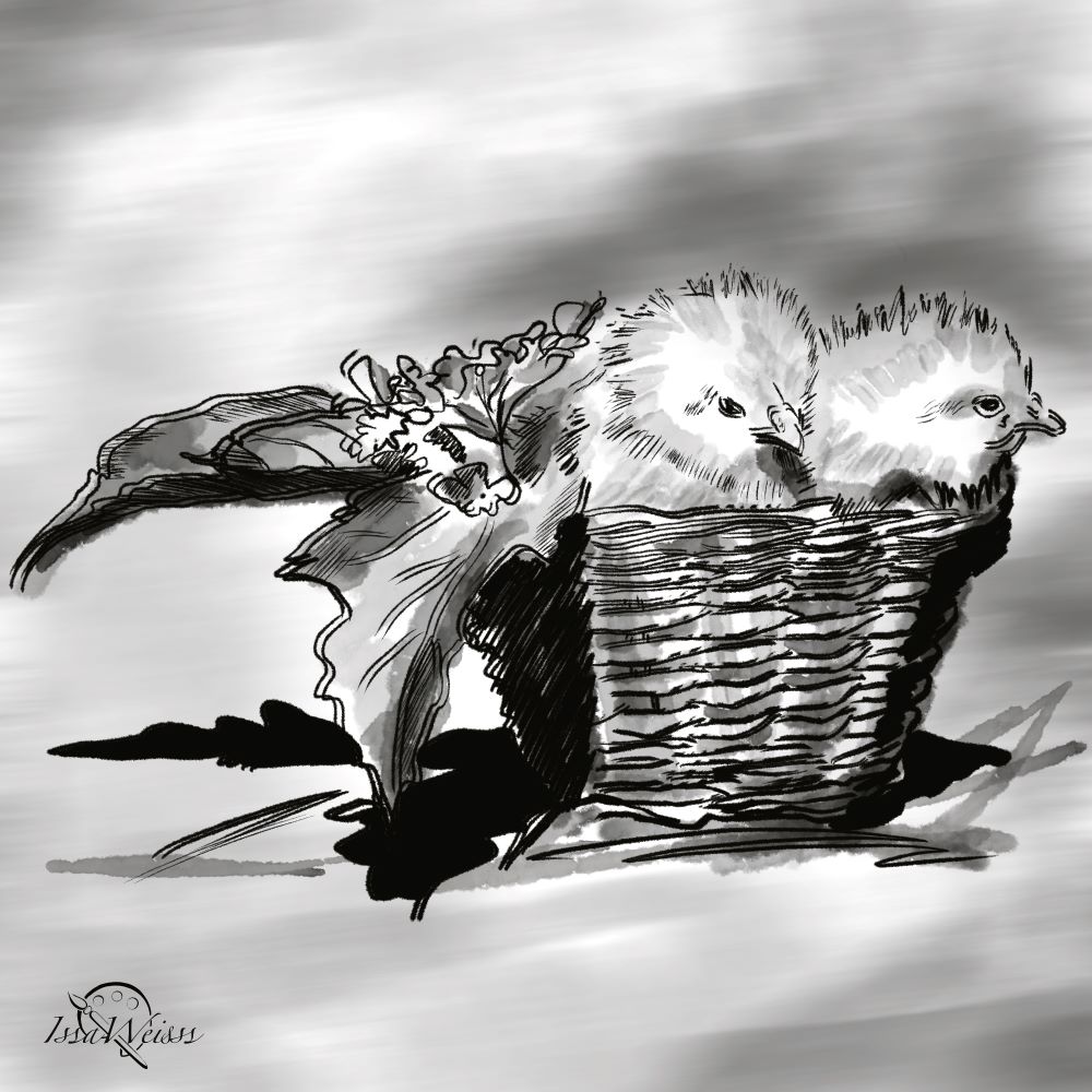 Оставили ребёнка с золотым потомством. Лукошко дали для яиц, решили: справится сама, ходить и говорить умеет, все дела.