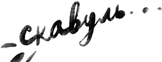 Вот я разсказал, как я нашолся. А што такое скавуль, я не разсказал. Аднажды к Аничке пришол такой Скрипач. Ево звали Андрей, но все иво звали Скрипач, патамушта он на гитаре играл. И вот етот Скрипач увидел миня. И стал со мной знакомиться. Лег на пол и поползал ко мне знакомиться. Я очинь удивился, што он такой странный. И громко сказал: «Аничка, што ето такое, пачиму он поползает у тебя по полу? Он вапще нормальный, может, он потом съест миня?» А Скрипач стал хохотаться. Он сказал: «Такой большой кот! Я думал у него толстый мяк, а у него такой тоненький скавуль». Скавуль ето был звук, когда я был вазмущенный и негодувающий, и тоже абискураженный иво, Скрипача, паведением. Но мне понравилось ето спициальное слово. Типерь я когда абижен, или вазмущен, или мне страшно или я абиссилился от голода, патамушта мисочка дно показала, я сразу гаварю: «СКАВУЛЬ!» И Аничка все панимает, и нимедлина чисает мне пузичко, и дает кусинькое. Такая у миня харашо васпитанная Аничка.