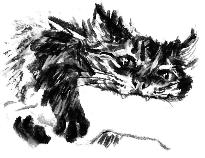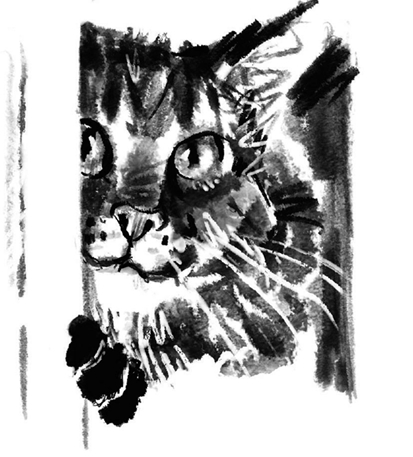 Я очинь кот дикий и апасный. Всигда когда Аничка дверь открывает, я думаю: «Надо мне на свабоду ринуться!». И сразу как ринусь! Побигу нимножычко, а патом думаю: «Как же Аничка без меня будет?» И тогда падаю и нимедлино валяюсь с бочка на бочок.