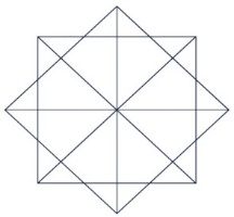 Нам необходимо построить два квадрата, как указано на рисунке 1 и провести диагонали в каждом квадрате. Данные квадраты символизируют личный квадрат и родовой квадрат. Рассчитаем базовые энергии.