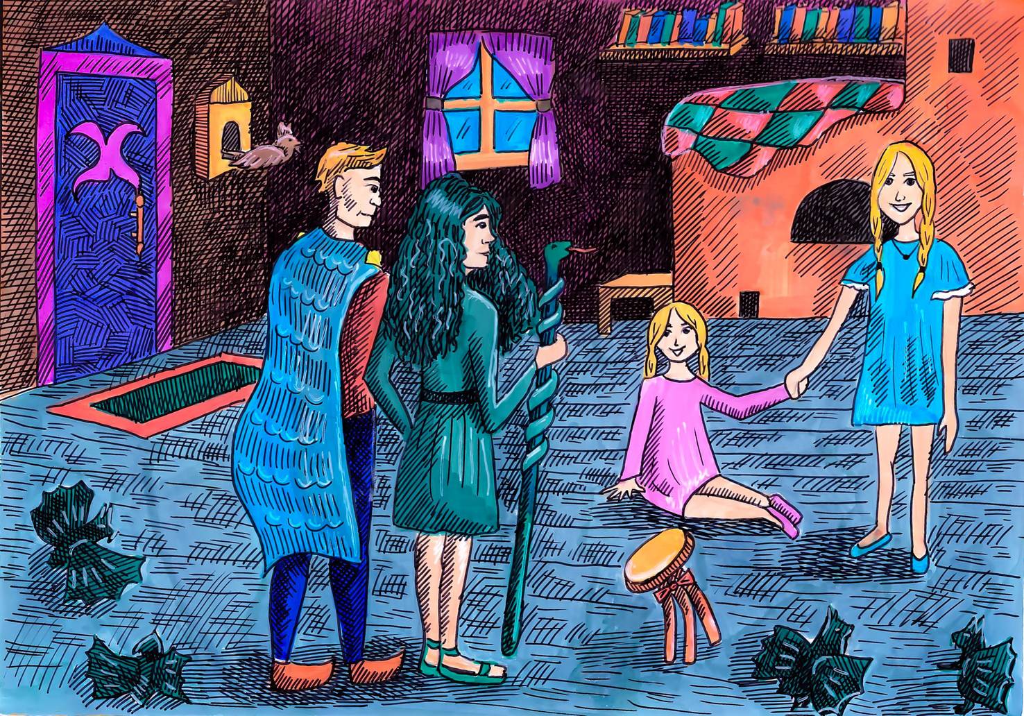 – О нет! Избушка на курьих ножках! Баба Яга! – догадалась Вера, сложив два плюс два. Ли же, недолго думая, схватила Веру за руку и потащила рывком к двери, надеясь выбраться наружу, но входная дверь с силой захлопнулась прямо перед её носом. Внезапно земля ушла из-под ног и сестры оказались как будто бы в воздухе. Посмотрев вниз, они увидели, что летят на ножном коврике, на котором они оказались у входа. Он был крайне неустойчив и маловат для двоих пассажиров, к тому же, слишком тонким – его края то и дело струились на воздушных волнах. Ли с Верой были так напуганы происходившим, что уже даже не знали, чего страшиться сильнее – того, что они могут рухнуть с волшебного коврика и волшебно целиком переломаться или оказаться заживо зажаренными в печи злой Бабы Яги, как во всех этих страшных сказках, что рассказывала им Татяныванна.