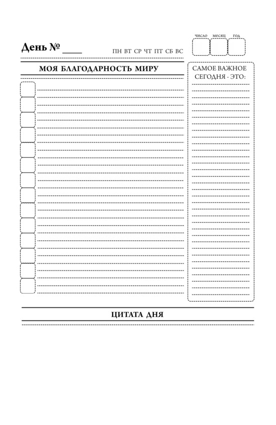 • Смело распечатывайте дополнительные листы «Дневника», ведь с каждым днем благодарность в вас будет расти и вы уже не сможете ограничиться 1 листом.