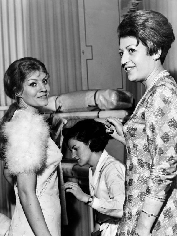 Мои спутники тоже были утомлены и потому согласились на платье из джерси кораллового цвета и французские серебряные туфли. Французские – ибо у меня 40-й размер, а среди итальянских такого просто нет, то есть имеются, но в действительности соответствуют нашему 39-му. Поверх всего полагалось накинуть пальтецо из искусственного меха розоватого оттенка. Именно только накинуть, ибо надеть его как следует я попросту не могла. Оно было мне узко в плечах, а рукава коротки. Волосы мне велено было распустить, но, поскольку они у меня вьются от природы, пришлось долго «распрямлять» их в парикмахерской. Но и без того я чувствовала себя как Офелия в сцене безумия. Садясь на следующий день в машину в этом абсолютном «снаряжении», я с чувством какой-то растерянности, удрученно подумала: «Ну, к чему все это? Для кого?»