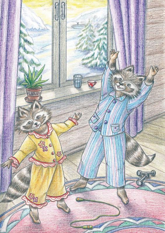 Енотики учатся делать зарядку, уважать порядок, понимают, что такое режим.