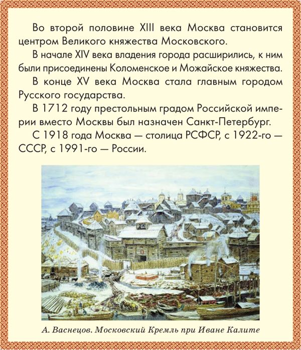 – Рождаются города не сразу, – улыбнулась Москва, – сначала, обычно на берегу реки, появляется поселение – людям важно жить у воды.