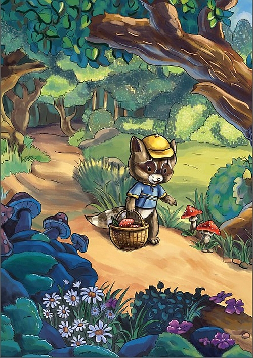 Мышка Дуся вышла из дому и, напевая песенку, зашагала к лесу.