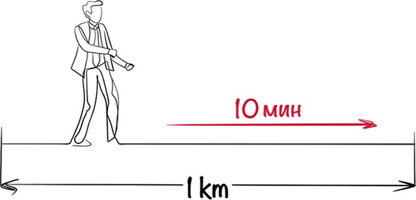 Есть расстояние 1 км, которое ты преодолеваешь пешком за 10 минут.
