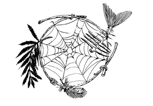 Это была круглая сетка – очень тоненькая, узорчатая паутина, замысловато сплетенная в каркасе из согнутой в кольцо камышинки. По бокам и в нижней части кольца висели белый лепесток, лист папоротника и сухой рыбий хвостик.