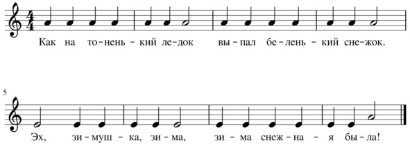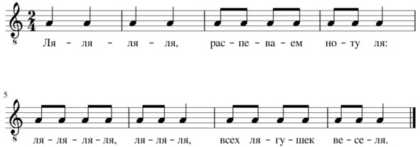 Перед игрой мелодии нужно прохлопать её ритм и пропеть.