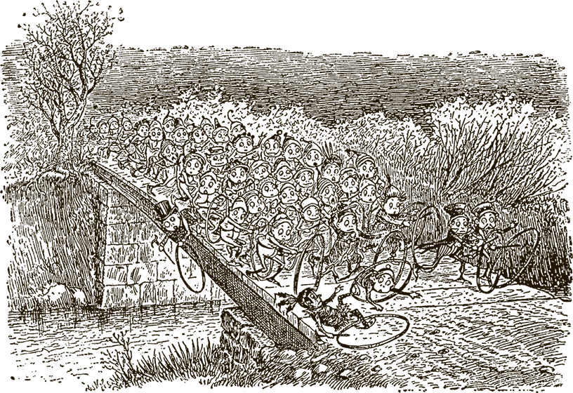 Но это предупреждение уже запоздало: малютки так разогнались, что не смогли сразу остановиться. Теснясь и толкаясь, вбежали мы на каменный мостик, рискуя каждую секунду очутиться в воде.