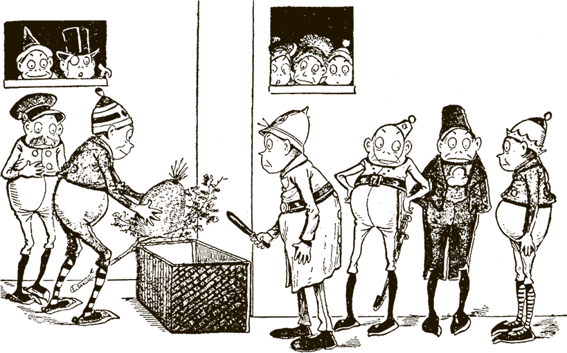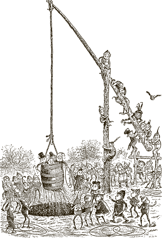 – Некогда! – заметил Дедок Бородач. – Не забудьте, что мы ещё должны вернуться в бондарную мастерскую и отремонтировать бочки, которые разбили.