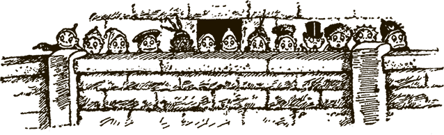 Некоторые из нас тотчас взобрались на забор, чтобы получше разглядеть поляну, а другие, облепив решётку, любовались зданием.
