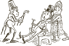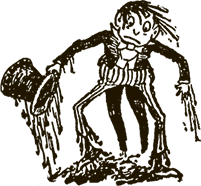 Больше всех пострадал я. Моя новая шляпа-цилиндр превратилась в блин, фрак порвался, а монокль разбился. Ко мне никто не спешил на помощь, и я долго лежал без чувств на полу и даже не стонал, будто уже умер.