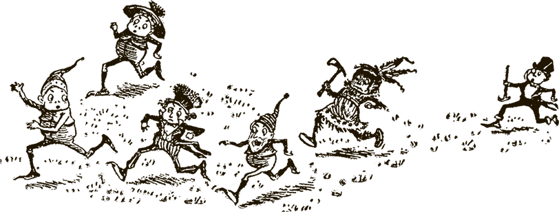 Самый сердитый, злой и свирепый из всех лесных малюток – Индеец: чуть что, тотчас хватается за топор, который всегда носит за поясом. И тогда беда тому, кто подвернётся ему под руку. Правда, топор у него небольшой, величиной с булавку, но и таким топориком можно нанести очень большую рану.