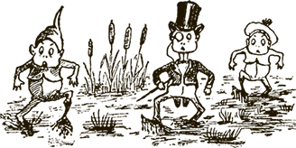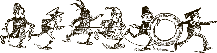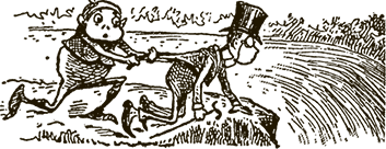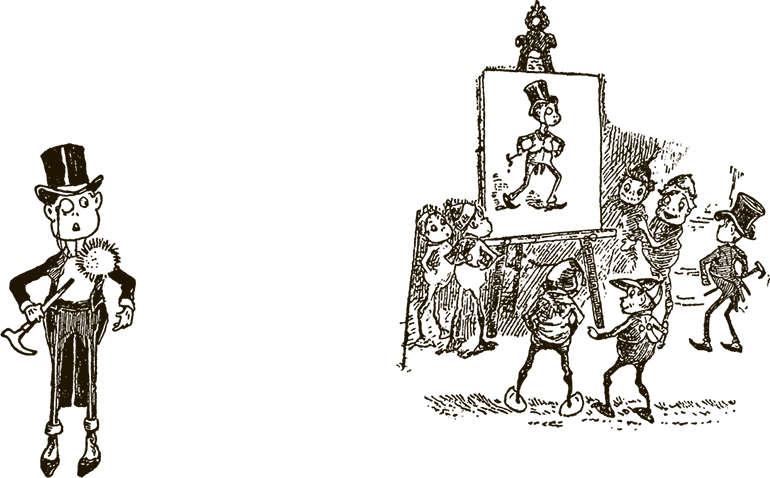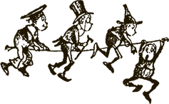 Все побежали, и впереди – Знайка, за ним Индеец, Дедок Бородач, Вертушка, Скок на своём велосипеде и далее остальные. Побежал и я, хотя вообще-то я не особенно люблю бегать – ведь мои изящные штиблеты не приспособлены для этого. Конечно, я очень скоро отстал и едва-едва смог догнать остальных.