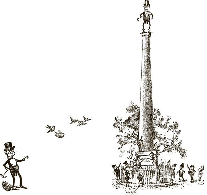 В одно из своих странствований лесные малютки наткнулись на постамент для памятника, высокую мраморную колонну. Фигура, которой предстояло занять это место, ещё не была готова.