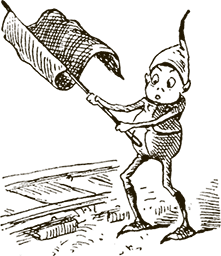 Мальчик хотел уже двинуться в сторону леса, но почувствовал, что его точно кто-то держит за ногу. Он нагнулся и только тут заметил, что вокруг его ноги толпятся крошечные смешные человечки, которых с первого взгляда можно было принять за букашек или муравьёв.