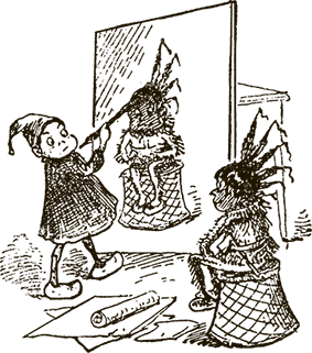 Между тем лесные человечки окружили его со всех сторон, а чтобы можно было с ним говорить, приставили лестницу. И хоть это была самая большая лестница в городе, но и она оказалась слишком короткой.